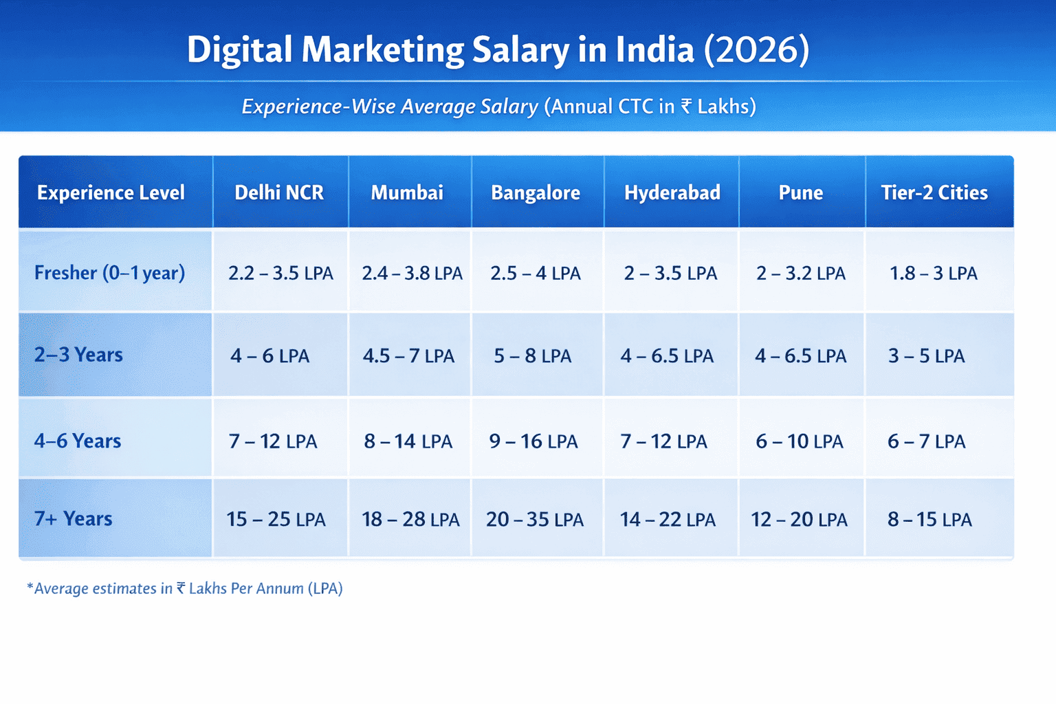 Senior professionals (7+ years) can earn ₹15 to ₹35 LPA, especially in growth or performance leadership roles.