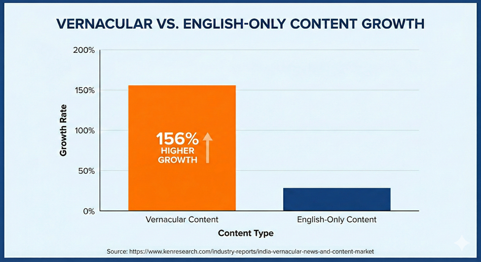 Here is a statistic that should make every marketer sit up and take notes: Vernacular content growth is currently 156% higher than English-only content. Consumers are craving content in Hindi, Tamil, Telugu, Marathi, Bengali, and other regional languages.