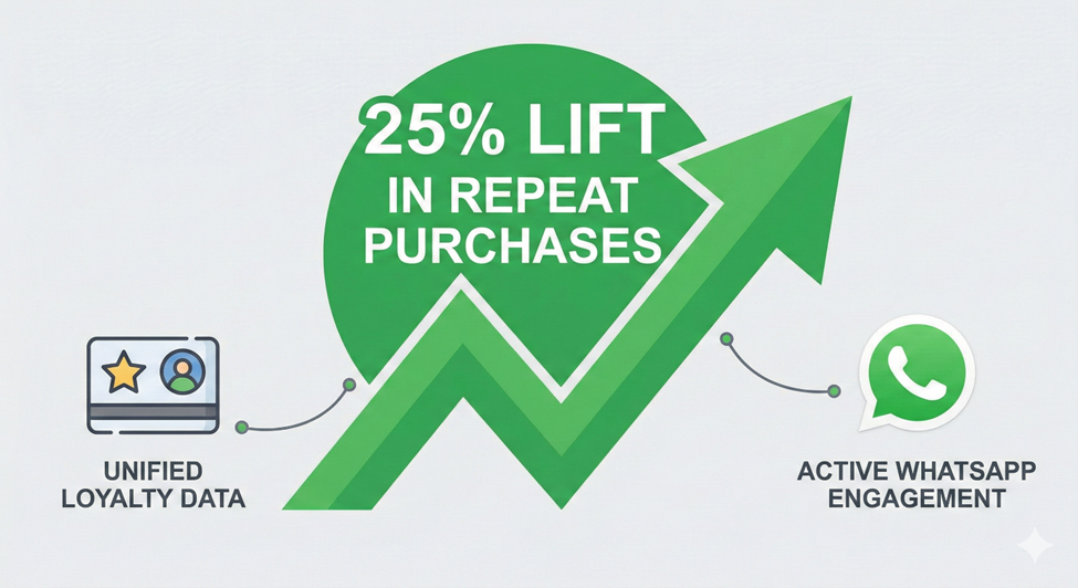 The Result: By unifying loyalty data with active WhatsApp engagement, Reliance saw a reported 25% lift in repeat purchases.